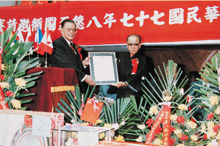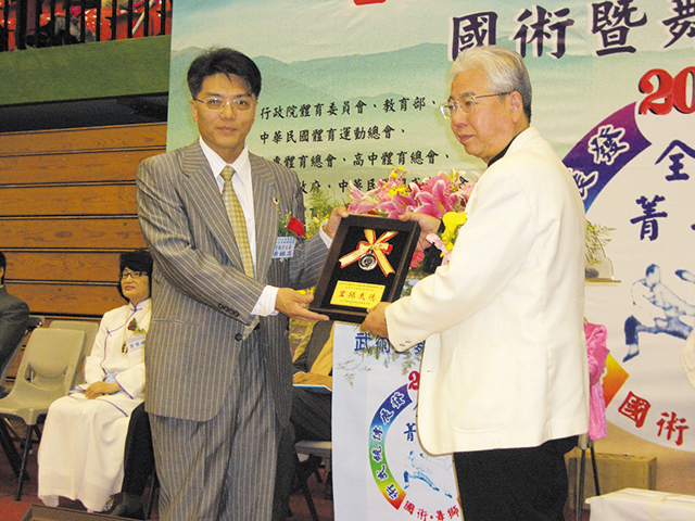 菁英盃大会開会式で、森實宗家に台北市國術会より