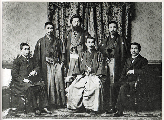 左から末永節、内田良平、宮崎滔天、右端が孫文